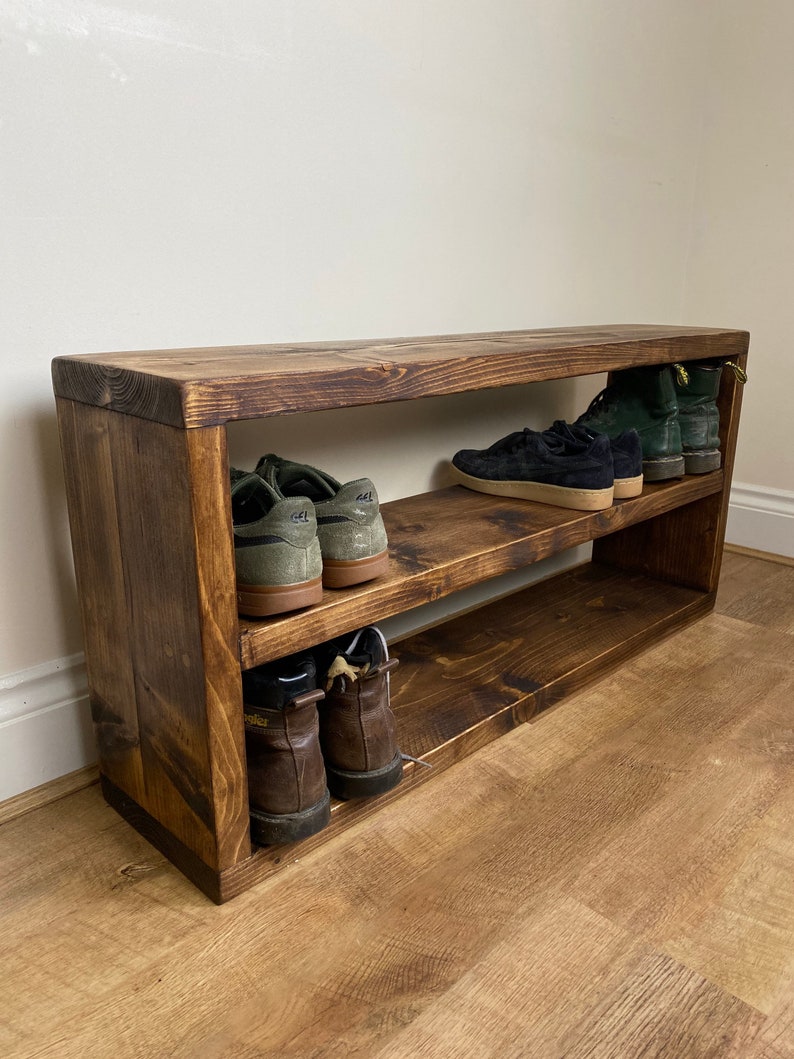 Get it as soon as Fri Jun 25. A sturdy bench seat gives home to one or two slotted shelves of footwear storage beneath. Nuage Oak Entryway Shoe Rack Bench Wooden Padded Shoe Cabinet Entryway Storage Bench with Cushion 2-Tier Modern Shoe Rack NuageWoodDesign.
